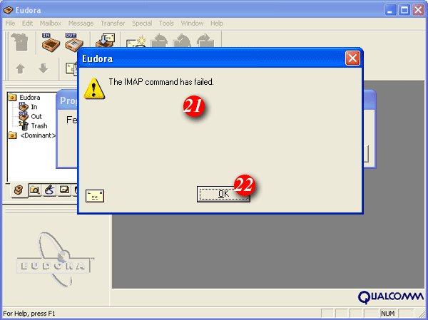 | 21)You will receive an error message from Eudora, this normal. | ||