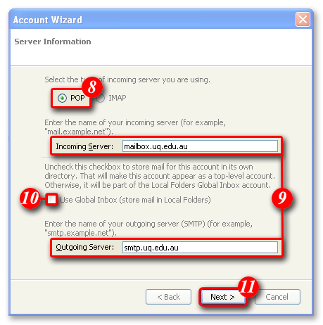 | 8)Ensure 'POP' is selected. |