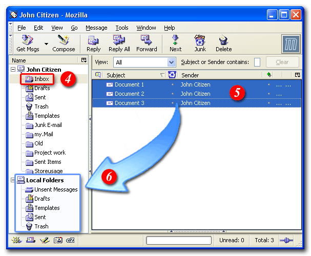 | 6)Drag the messages to the appropriate folder in your local folders group |