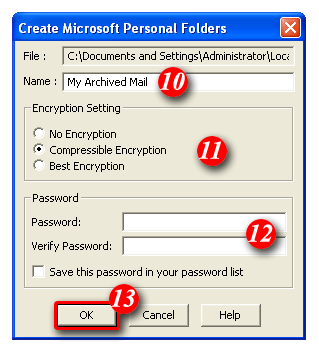 12)If you would like to place a password on your personal folder enter the details here (Note: ITS does not have the ability to reset this password, so you should only protect this folder if you feel it is absolutely necessary for security reasons. If you forget your password you will NOT be able to access your personal folders) |