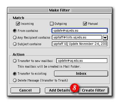 Your mail filter should now be in place. You should find that any filtered junk mail has been filtered out into the "Junk Mail" folder.