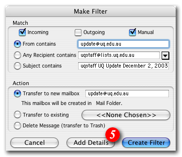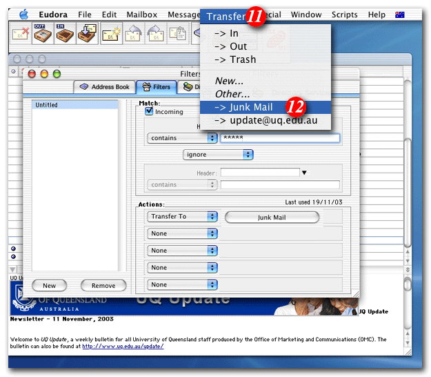 Your mail filter should now be in place. You should find that any filtered junk mail has been filtered out into the "Junk Mail" folder.