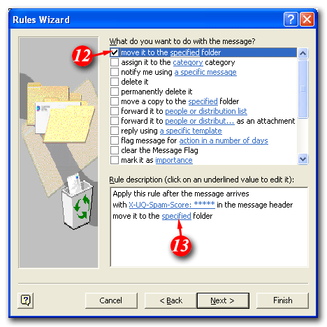 | 12)Put a tick in the 'move to specified folder' checkbox |