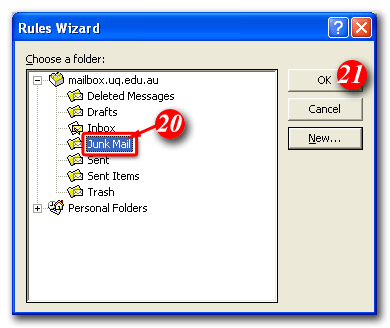 | 20) Make sure the 'Junk Mail' folder is highlighted |