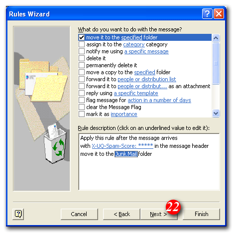 | 15)Enter a folder name i.e. Junk Mail |